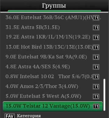 Спутники: 4°W+0.8°W+4.8°E+13°E+19.2°E, 28.2°E+ 31.5°E+36°E+39°E+42°E, 46°E, 85.2°E